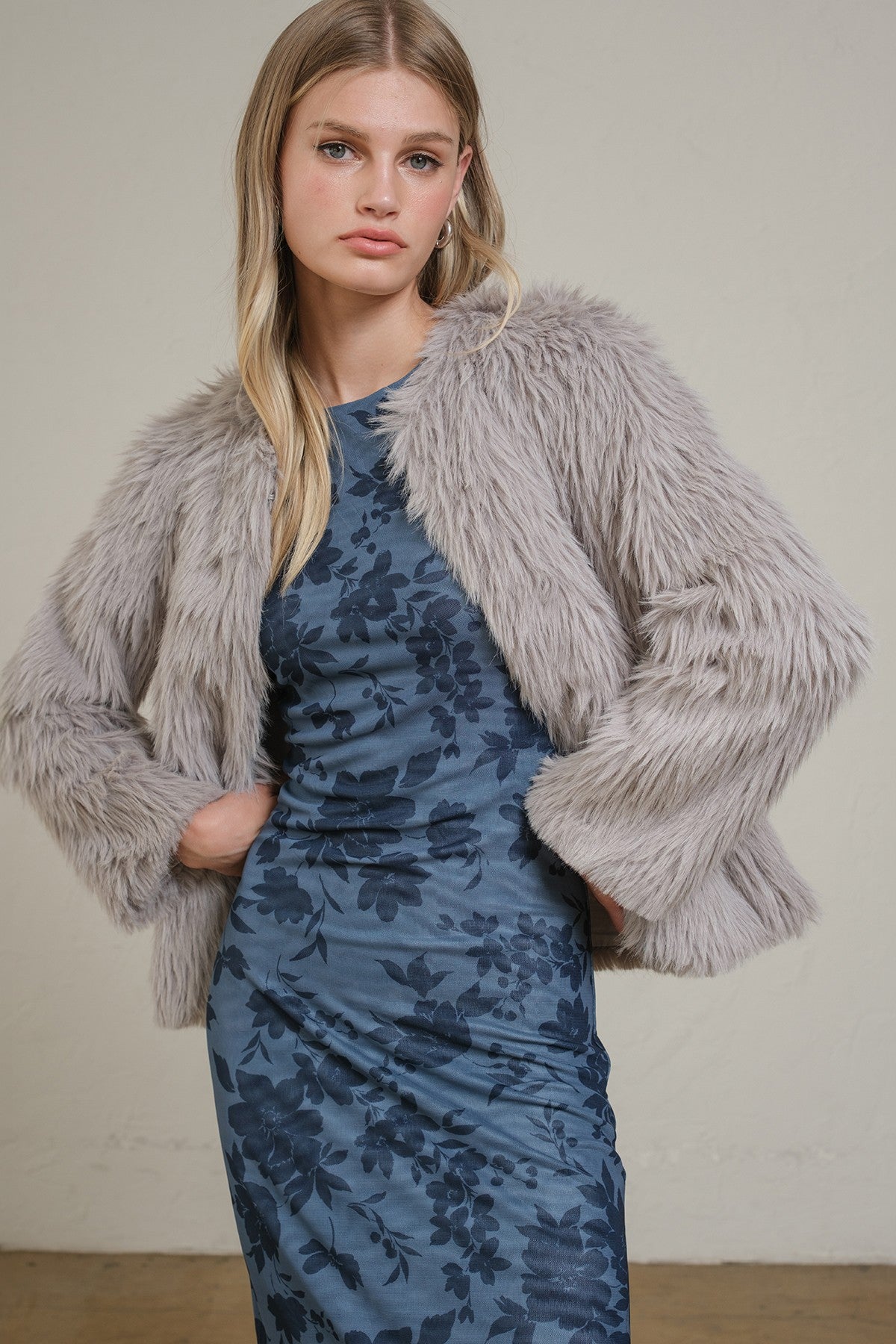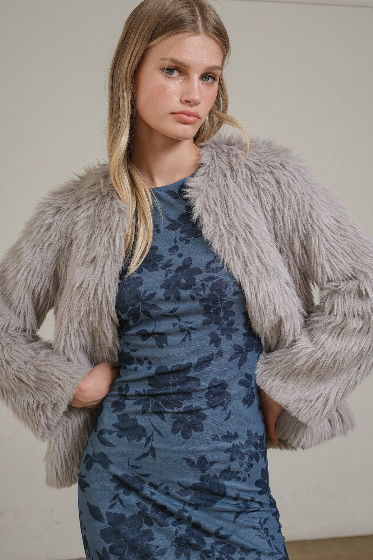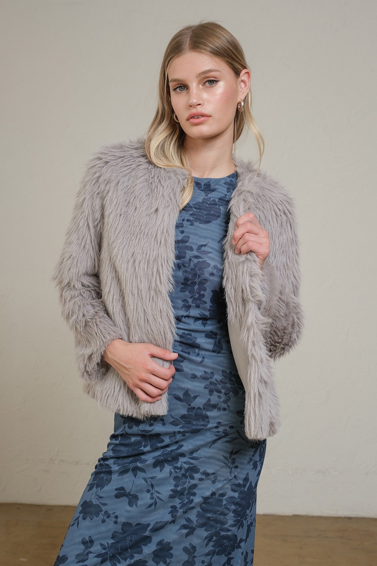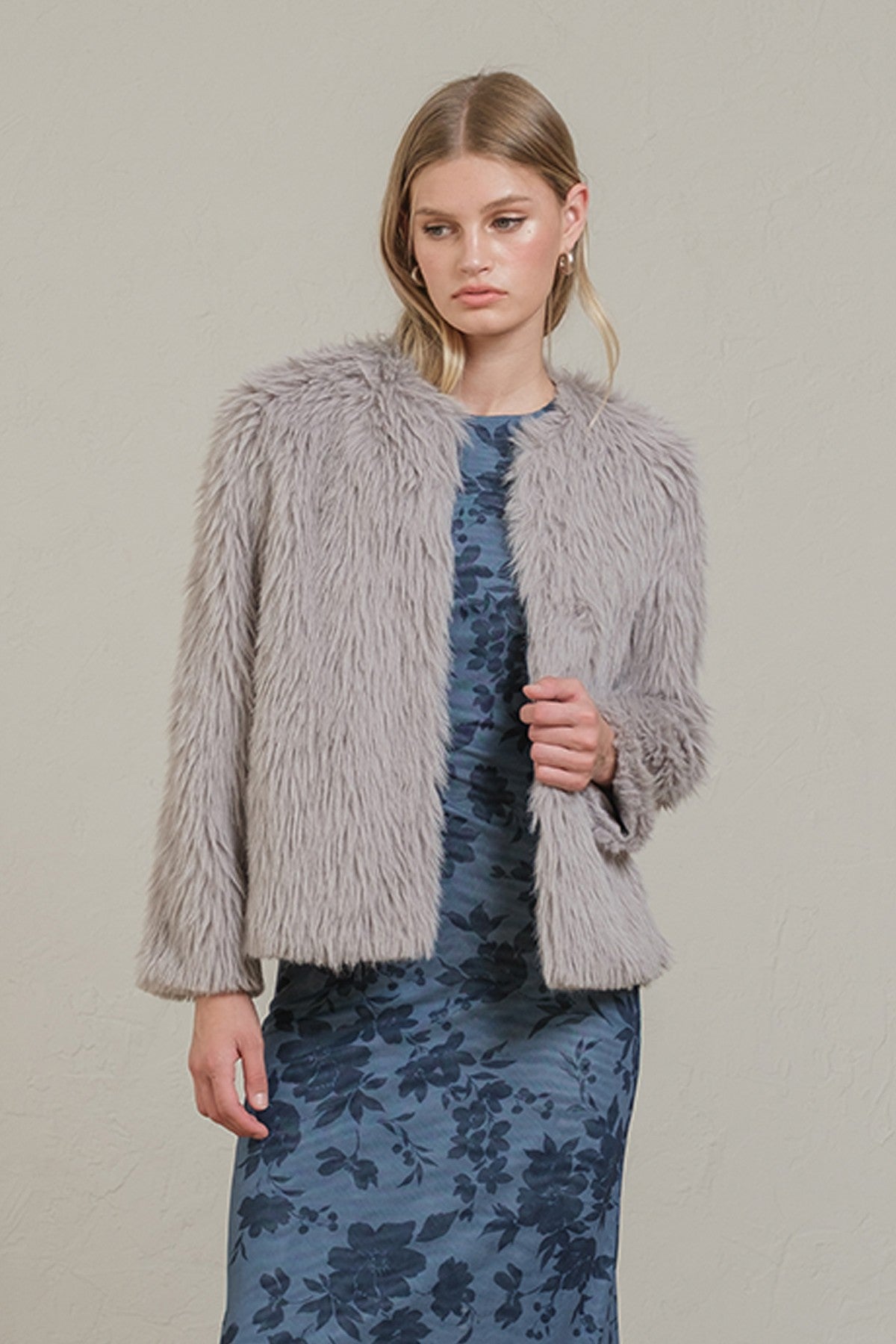 Stay cozy and chic in our faux fur short coat, designed for effortless sophistication. Crafted from soft, high-quality faux fur, this jacket provides warmth and style in equal measure. The cropped silhouette makes it versatile for layering over dresses, blouses, or casual looks.